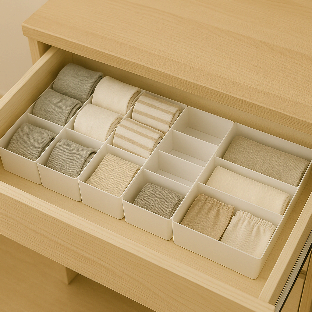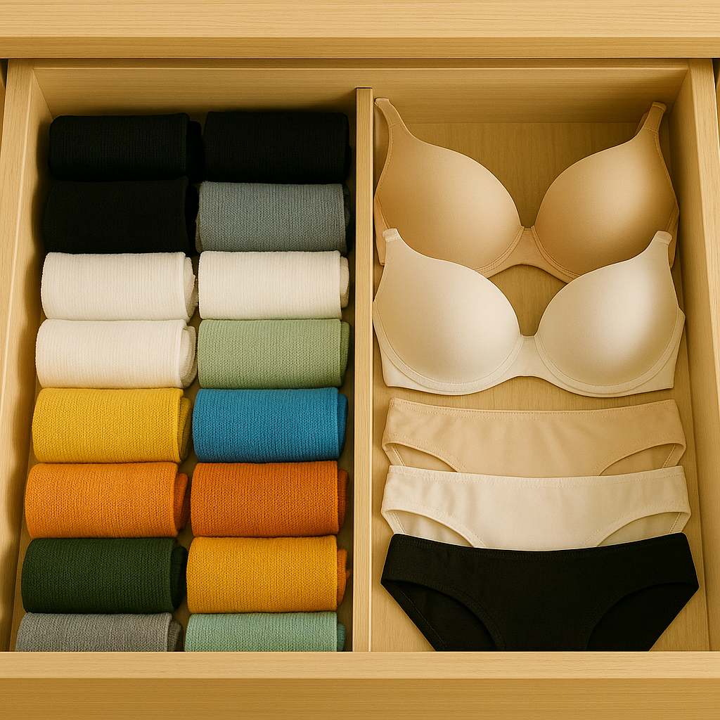 서랍 속 양말·속옷 정리법! 칸막이 활용, 색상별 구분, 계절별 교체, 세트 보관, 압축 보관 아이디어로 매일 아침이 편해지는 수납 방법을 알려드립니다. 양말과 속옷은 부피는 작지만 종류가 많아 쉽게 뒤섞입니다. 아침마다 짝을 찾느라 서랍을 뒤적이면 하루 시작부터 불편해집니다. 하지만 수납 방식을 바꾸면 같은 공간에서도 훨씬 많은 양을 깔끔하게 보관할 수 있고, 꺼내 쓰기도 편리합니다. 이번 글에서는 누구나 바로 실천할 수 있는 양말·속옷 정리 아이디어를 소개합니다.
